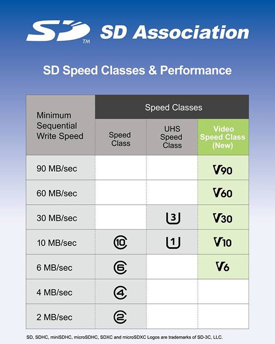 Отметка о принадлежности к классу Video Speed Class будет указываться на картах памяти (SDHC, SDXC UHS-I и UHS-II), а также в спецификациях цифровых камер – дабы мы могли убедиться, что используем полный потенциал своей аппаратуры.
