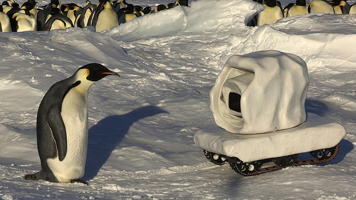 Фото- и видеосъемка дикой природы всегда требует проявления изрядной изобретательности для добычи уникальных материалов. И у специалистов телеканала BBC есть чему поучиться: в работе над документальным фильмом «Пингвины: шпион в толпе», группа продюсера Джона Даунера применила пятьдесят управляемых камер и камер-роботов, замаскированных под камни, снежные комки, яйца и, конечно, самих пингвинов.